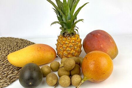 Манго желтое, манго (Перу), ананас мини, лонган (Таиланд), гранадилла, маракуйя (Колумбия)