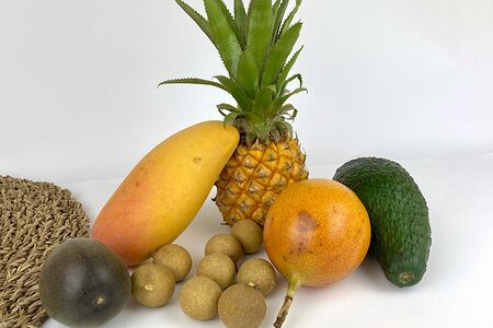 Мини-ананас, манго желтое, маракуйя Колумбия, лонганы Таиланд, гранадилла, авокадо