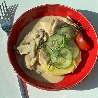 Феттуччине с копченой курицей и шампиньонами доставка