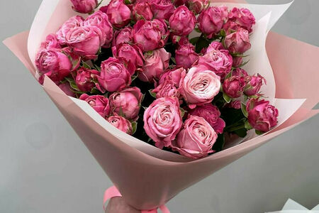 Нежные кустовые пионовидные розы в дизайнерской упаковке доставка