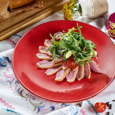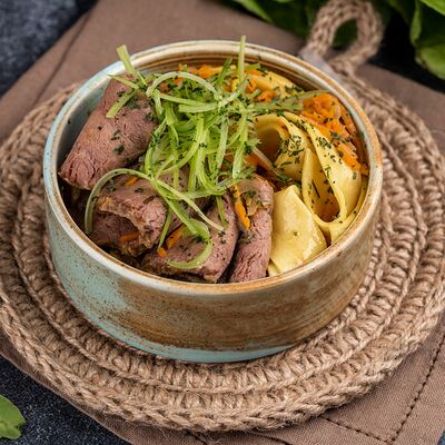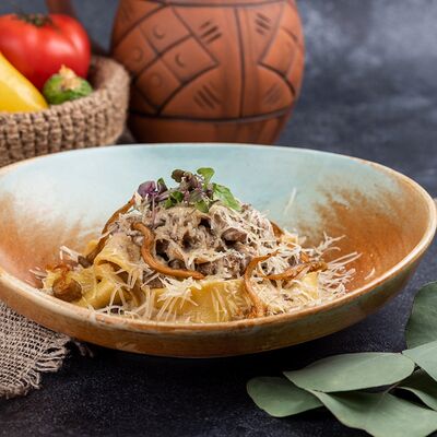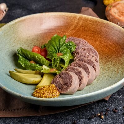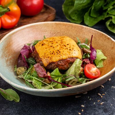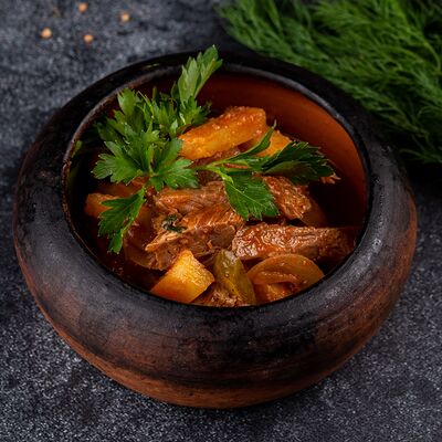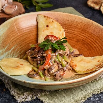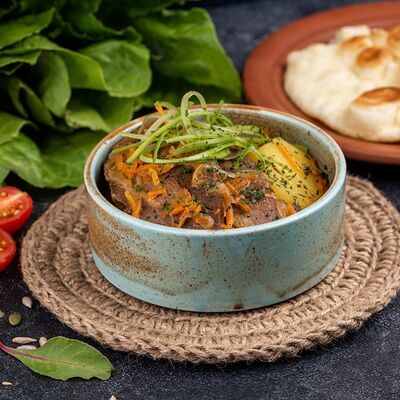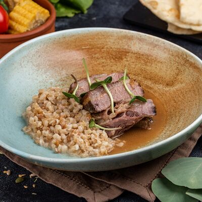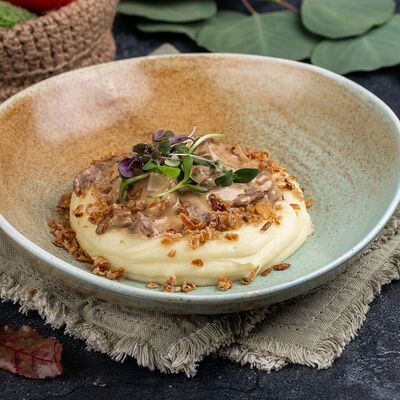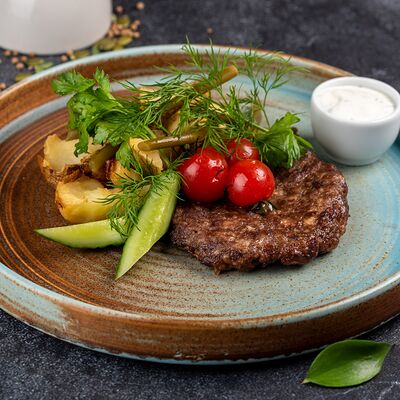 Корейка телёнка с картофелем по-домашнему и грибами доставка