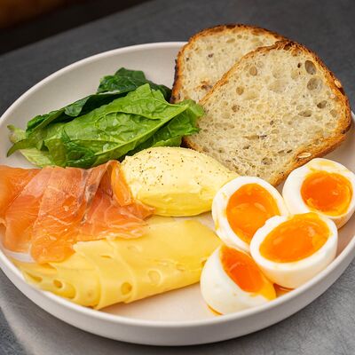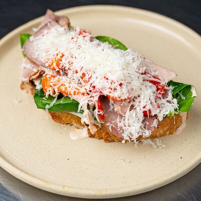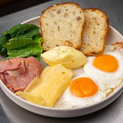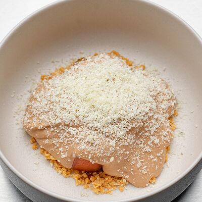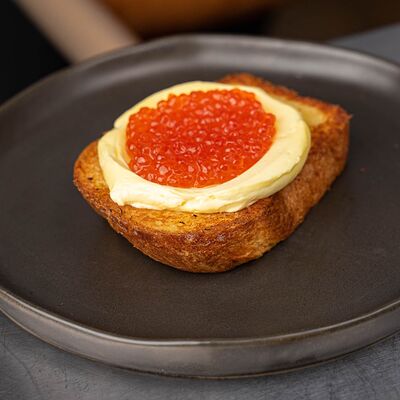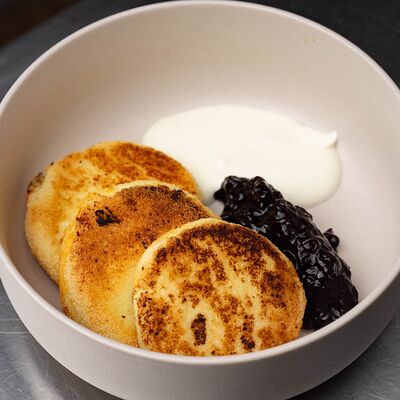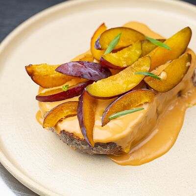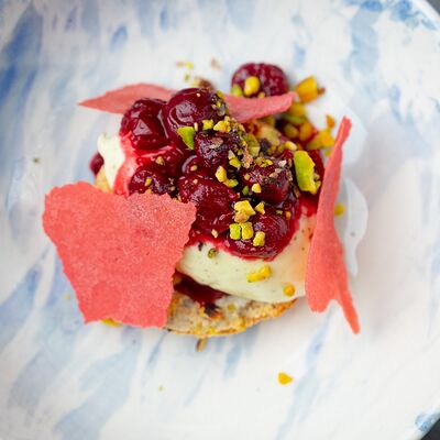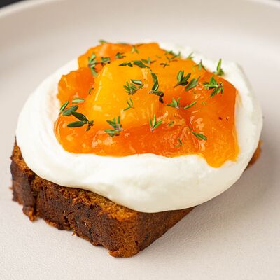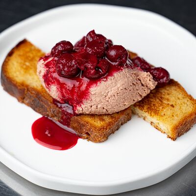 Куриный паштет, вишневое варенье, хлеб бриошь