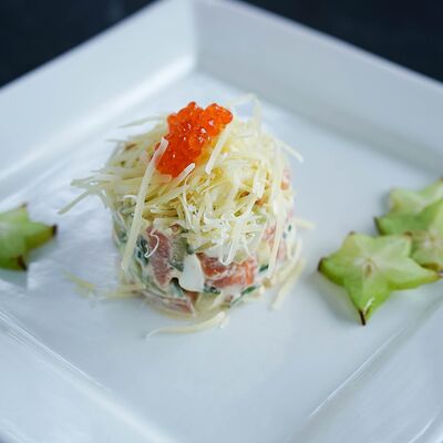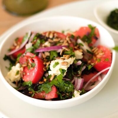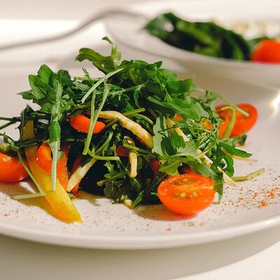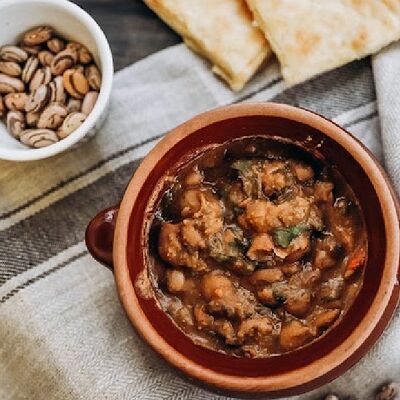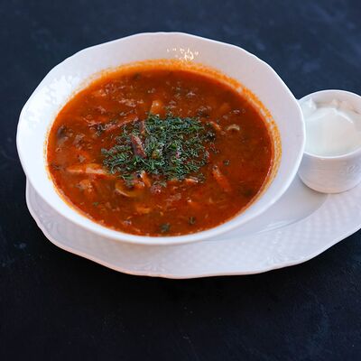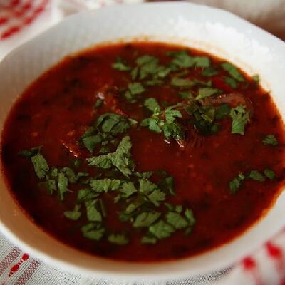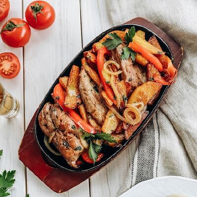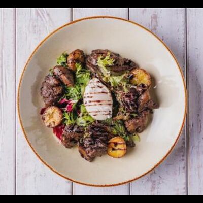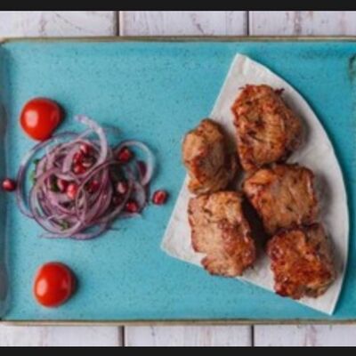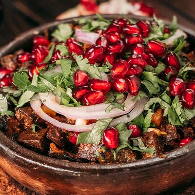 Телячье сердце, печень, лёгкие, обжаренные с луком, специями и гранатом