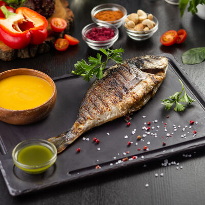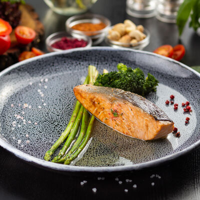 С цитрусовым соусом, припущенной спаржей и свежей брокколи. Способ приготовления на выбор