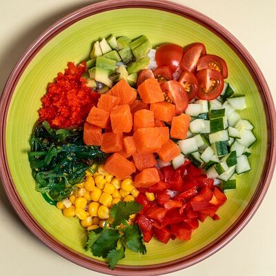 Лосось, огурец, зеленый лук, крем-сыр