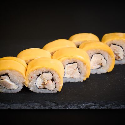 Сливочный сыр, угорь, копчёная куриная грудка, сырная шапочка, унаги