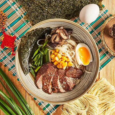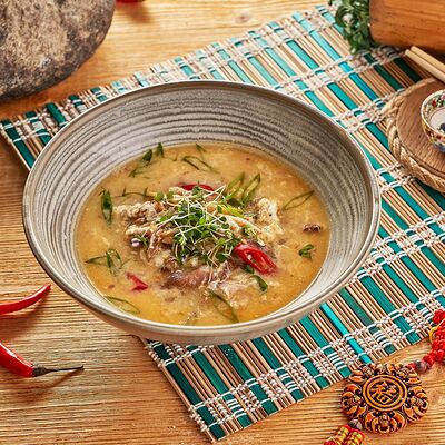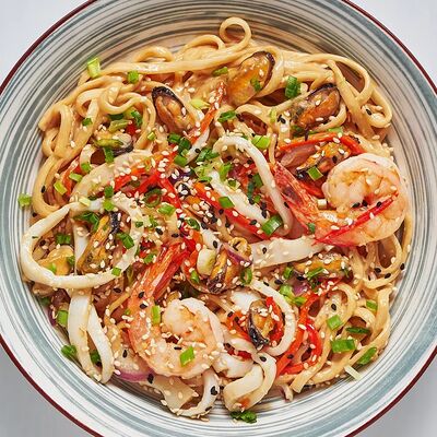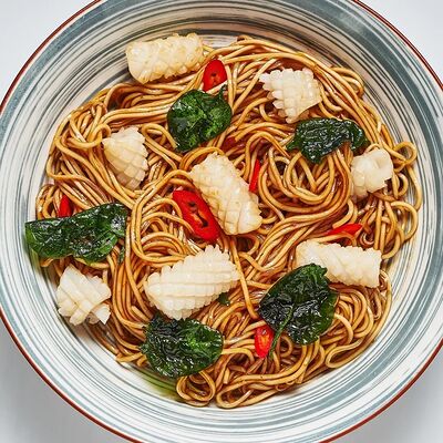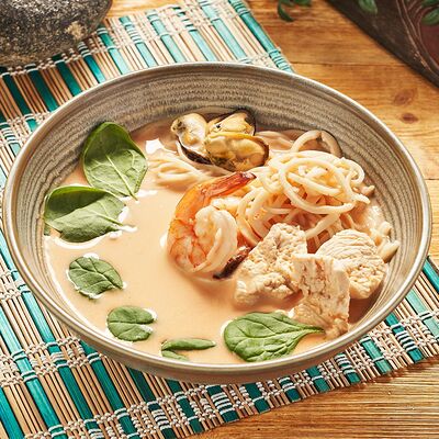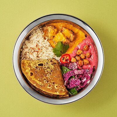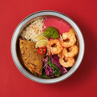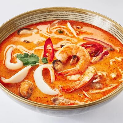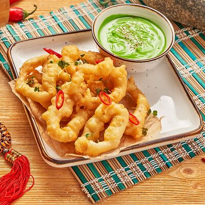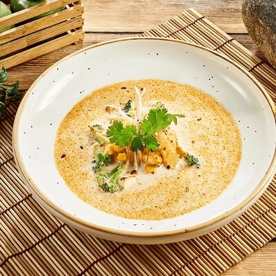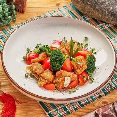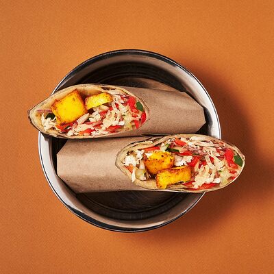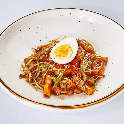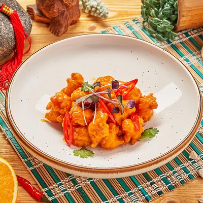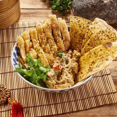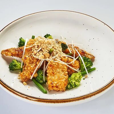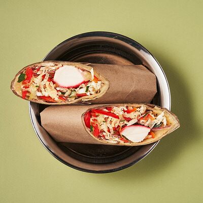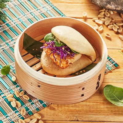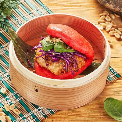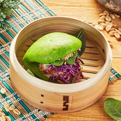 Бао булочка, соус сладкий карри, шпинат, сыр адыгейский, красная маринованная капуста, арахис