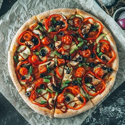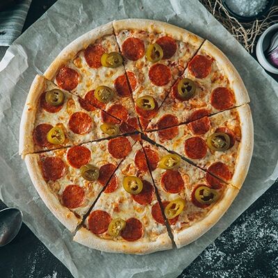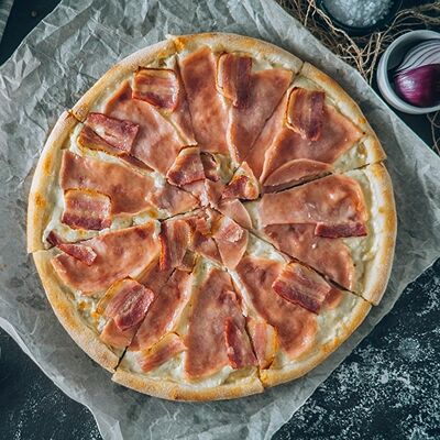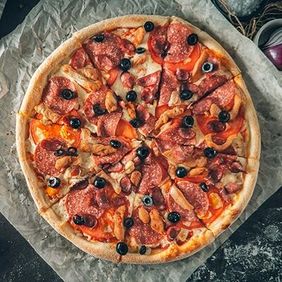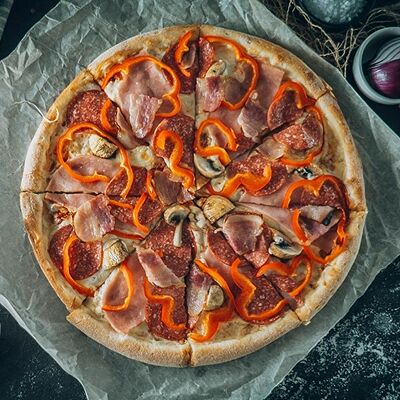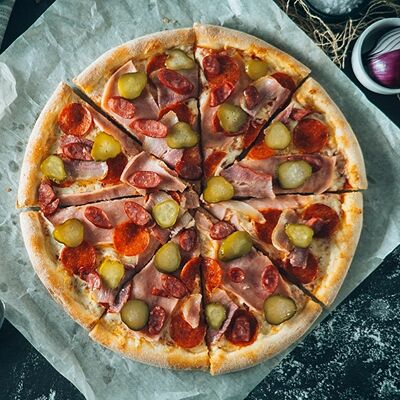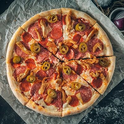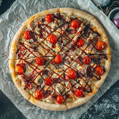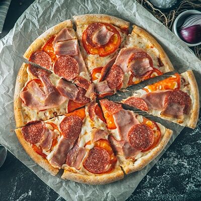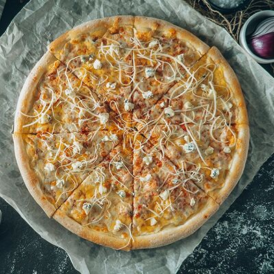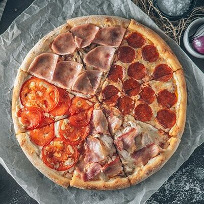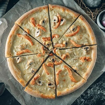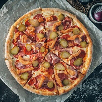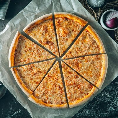 Фирменный томатный соус, сыр моцарелла, тесто для пиццы