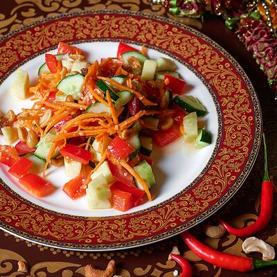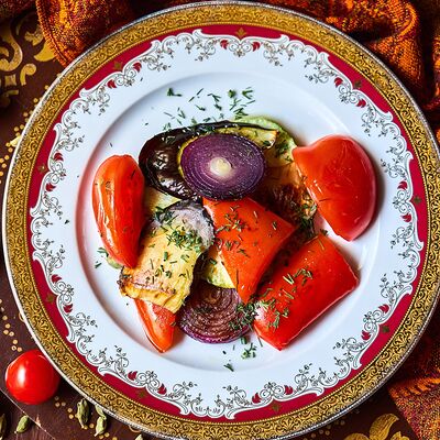 Перец болгарский, лук репчатый, томаты, баклажаны и цукини