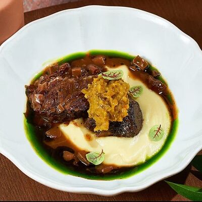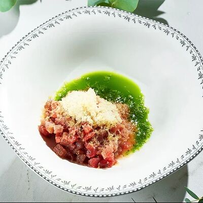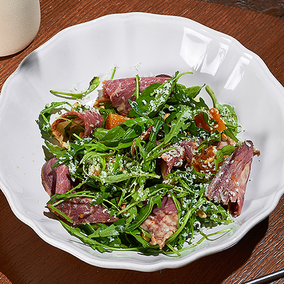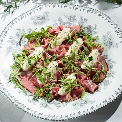 Ростбиф су-вид, соус вителло тонато, каперсы, рукола, микрогрин, трюфельное масло