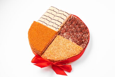 Торт состоит из четвертинок: Наполеон, Медовик, Баноффи, Эстерхази