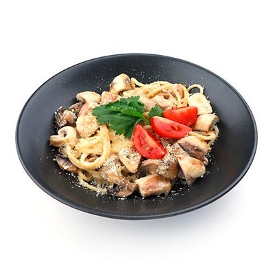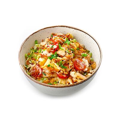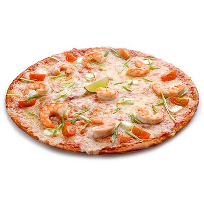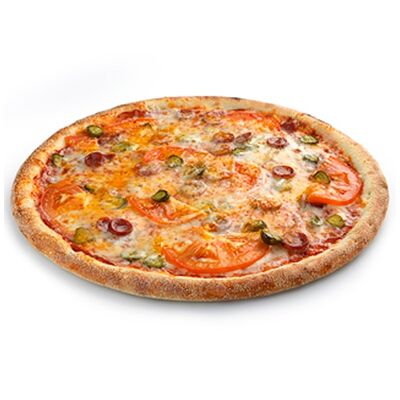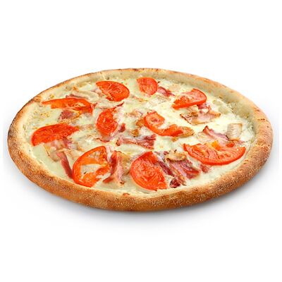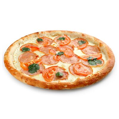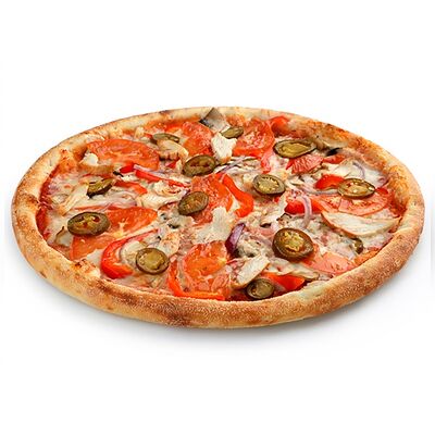Сыр моцарелла, рулет куриный халяль, майонез, томаты свежие, зелень свежая (30 см)