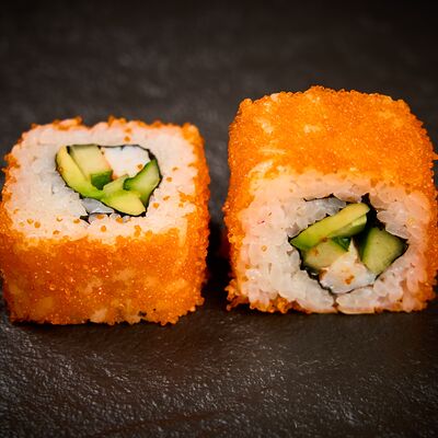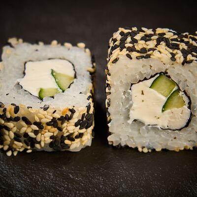 Сыр сливочный, огурец, курица, яки-соус, икра масаго