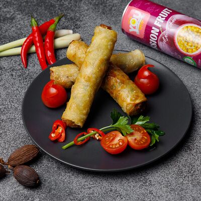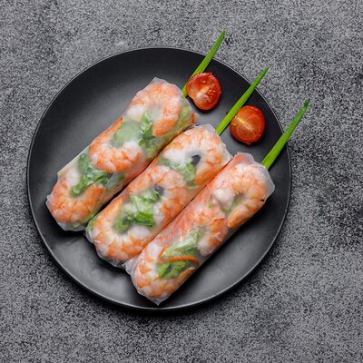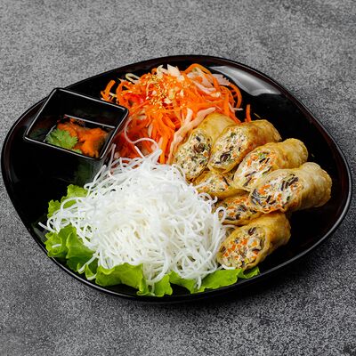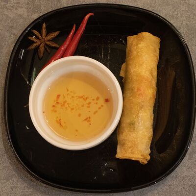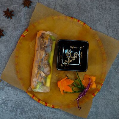 Свежие роллы в рисовой бумаге с начинкой из жареной утки, манго, огурца, моркови, рисовой лапши (1 шт.)