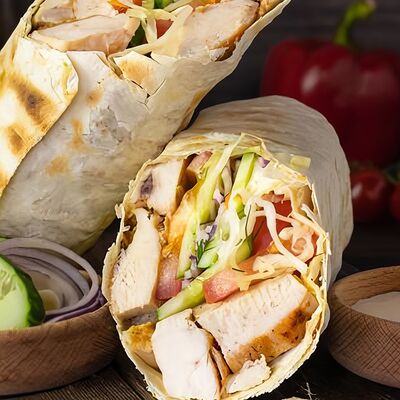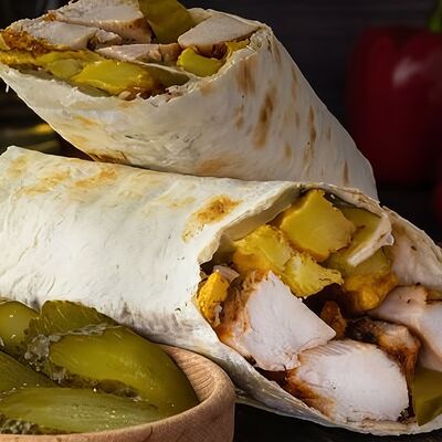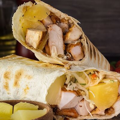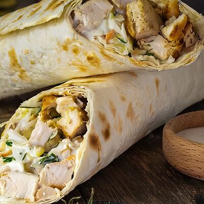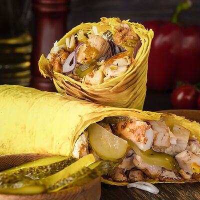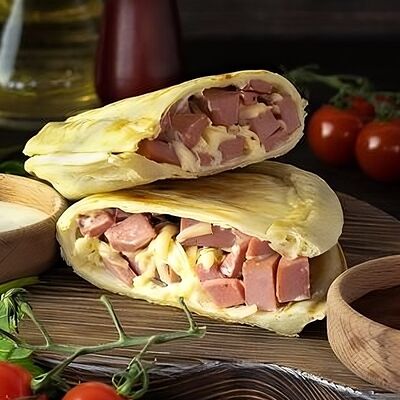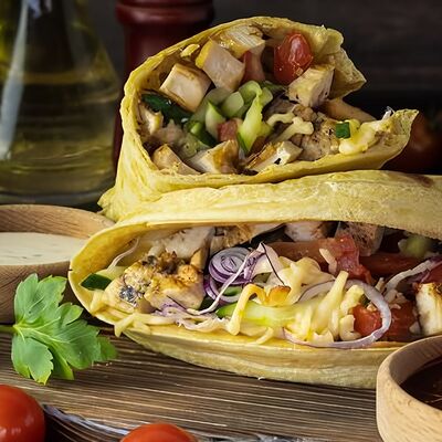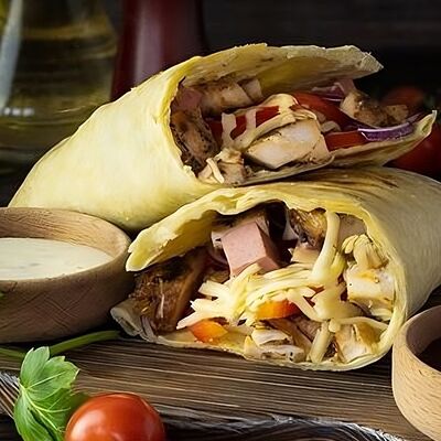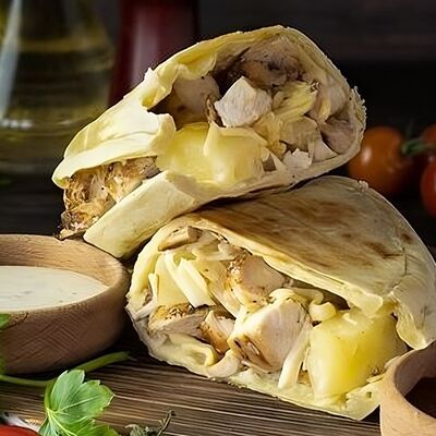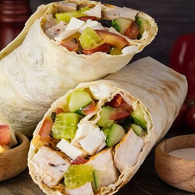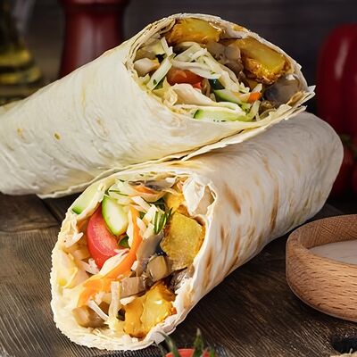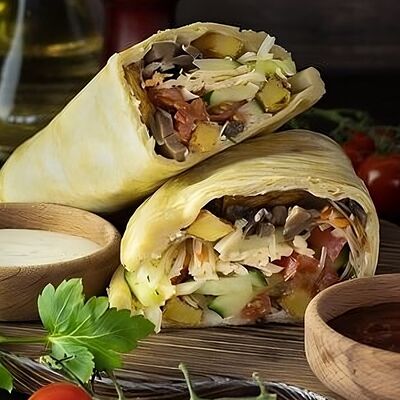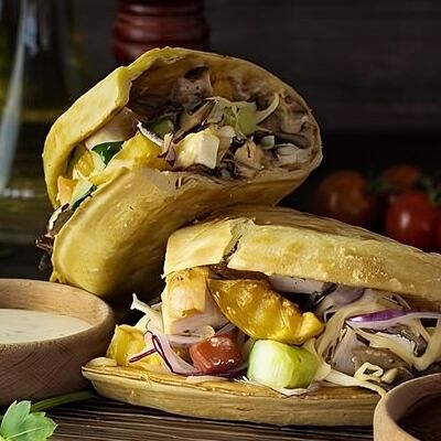 Корж, летний салат, картофель, грибы, капуста, морковь, фирменный соус