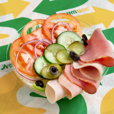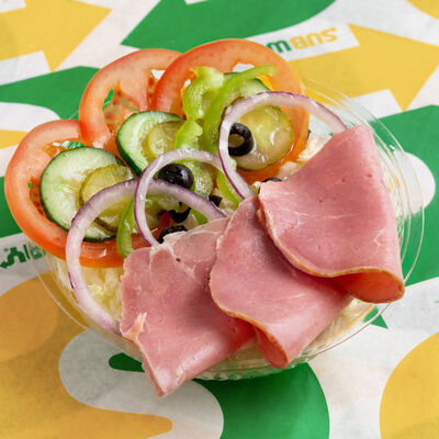 Сэндвич, приготовленный из кусочков пряной пепперони и салями, на свежевыпеченном хлебе с овощами и соусом на выбор