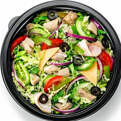 Бекон, индейка и ветчина с сыром на хлебе, с овощами и соусом на выбор (30 см)