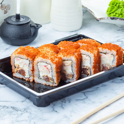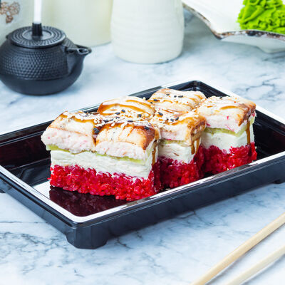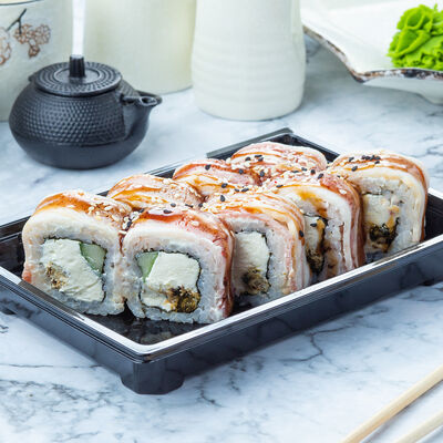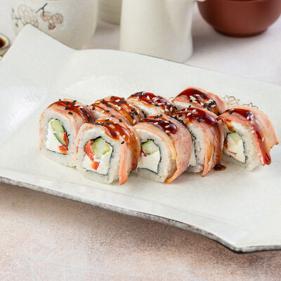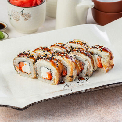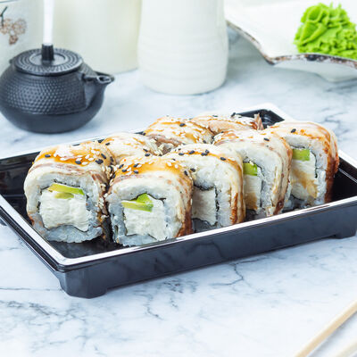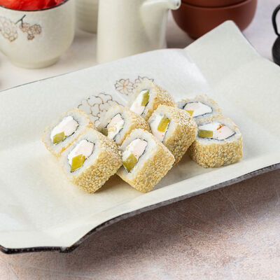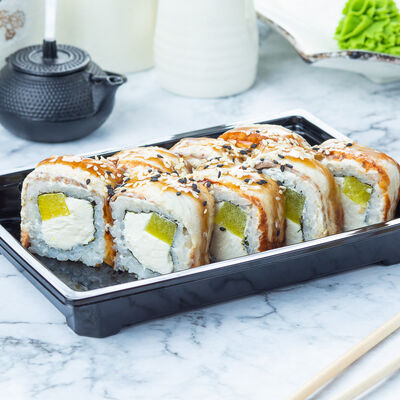 Угорь, огурец, кунжут, сливочный сыр, унаги соус