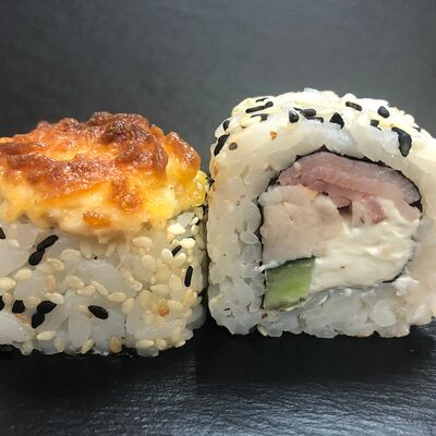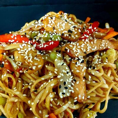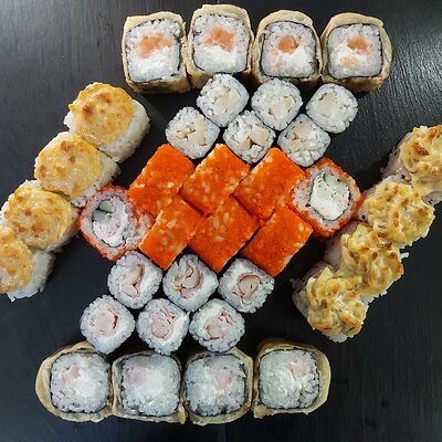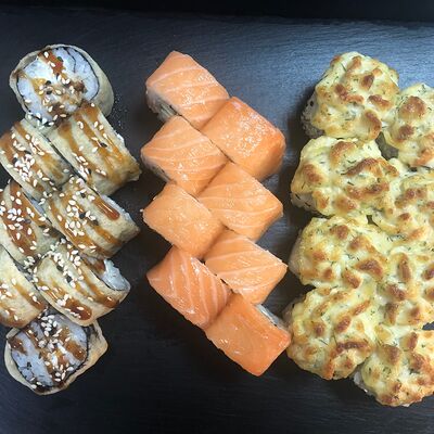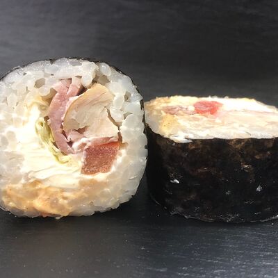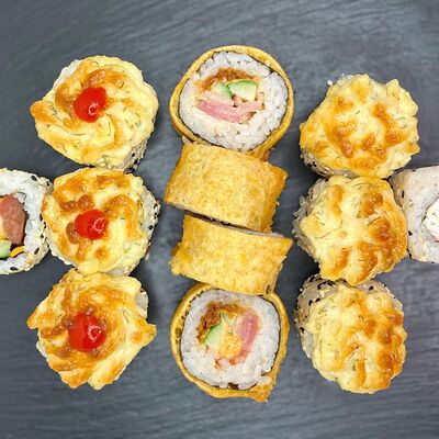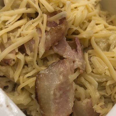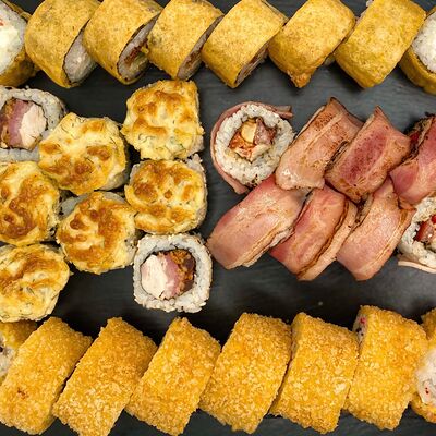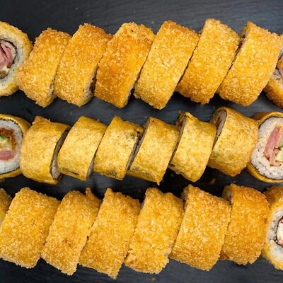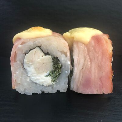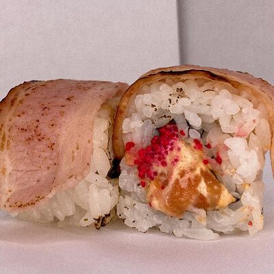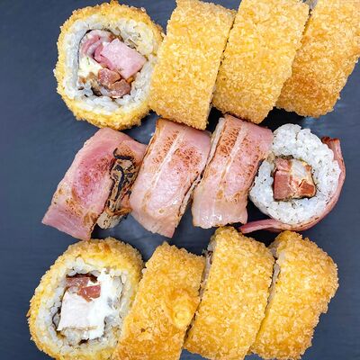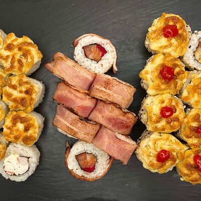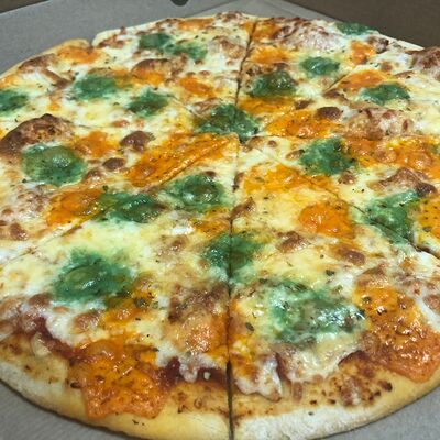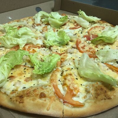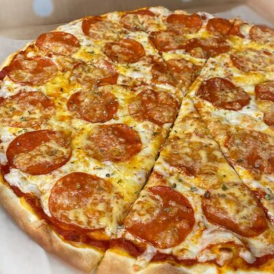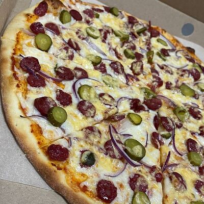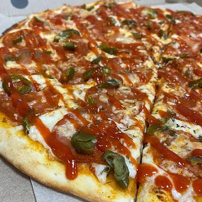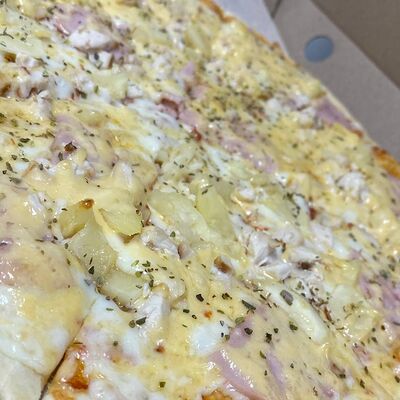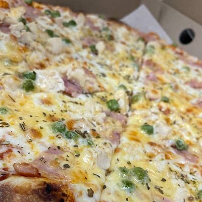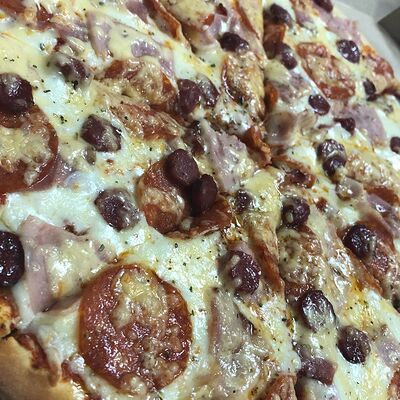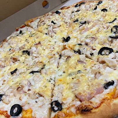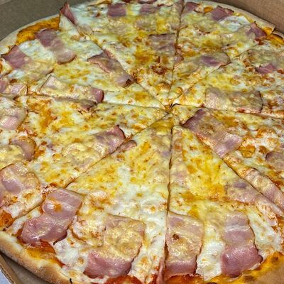 Тесто, соус томатный, сыр моцарелла, ветчина, бекон, пепперони, сыр твердый (32 см)