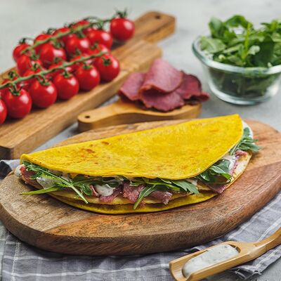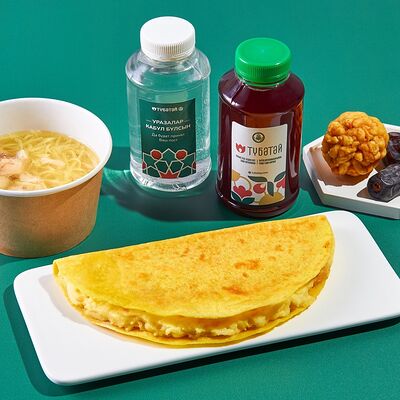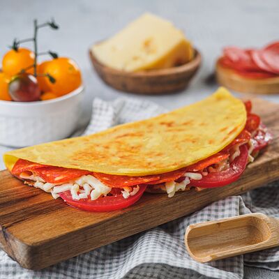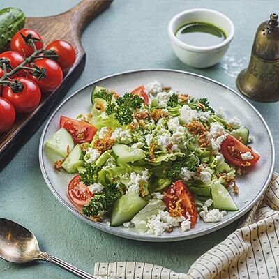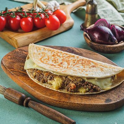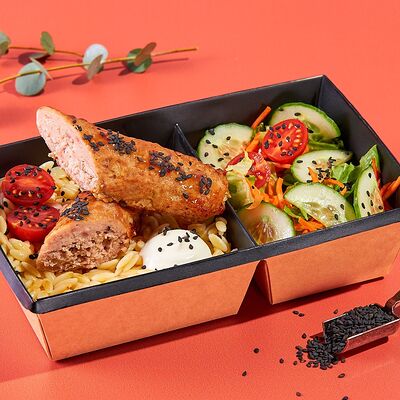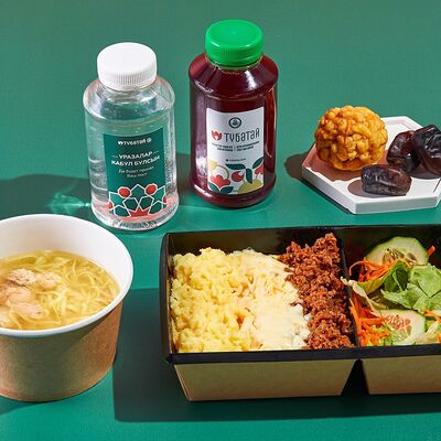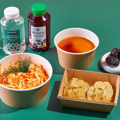 Салат из капусты и моркови, картофельное пюре с молоком и сливками, сыр моцарелла, соус болоньезе (говяжий фарш, лук репчатый, морковь, томаты, соль, перец)