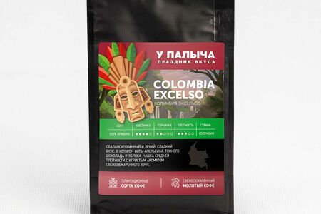Кофе ТМ «У Палыча», собирается вручную на лучших плантациях Колумбии, так в производство поступают только спелые ягоды. Для обжарки зерен используются лучшие ростеры, которые раскрывают вкусовой потенциал кофе. Профиль обжарки подбирается индивидуально, поэтому обжарка и вкус всегда высокого уровня. Тело кофе Колумбия Эксельсо плотное, с приятной горчинкой и выдержанной кислинкой во вкусе.
