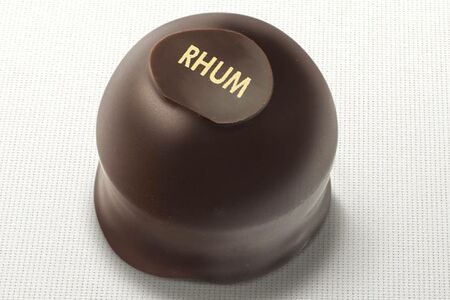 Конфета из черного 70-го шоколада «Grand Cru Guanaja» с ромом «Capitan Morgan» (крепость 60°) и сахарным сиропом.