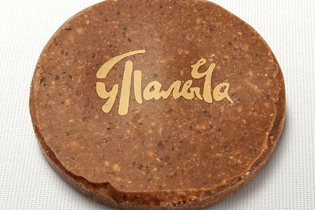 Медаль из молочного 39%-го шоколада «Superalpina» с кусочками миндаля и фундука в карамели.