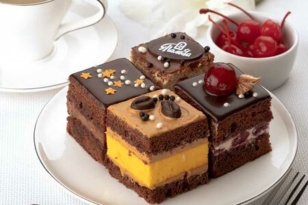 Мы получили от Вас так много положительных отзывов о наших тортах, что решили объединить любимые вкусы в один десерт. Прага, Кофейный, Киевский, Вишневый…ммм… так рождаются гастрономические впечатления.