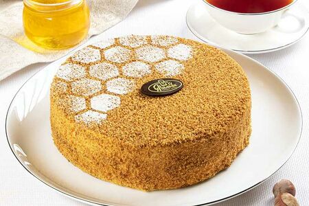 Торт «Медовик домашний» от ТМ «У Палыча» — новая интерпретация любимого медовика. Нежный, воздушный, бархатный медовый бисквит на основе муки высшего сорта с добавлением меда и легкий заварной крем из сливочного масла, меда и сметаны. Каждый слой бисквита пропитан сахарным сиропом. Торт декорирован медовой крошкой, сахарной пудрой и фирменной медалью из шоколадной глазури. Необычное оформление этого десерта с рисунком медовых сот не оставит никого равнодушным. Нежный крем в тандеме с воздушным медовым бисквитом Медовика домашнего от ТМ «У Палыча» очарует не только взрослых, но и маленьких сладкоежек. Этот десерт идеально подойдет к чашечке чая или кофе. Порадуйте любимых и близких, друзей и коллег, угостив их кусочком торта «Медовик домашний» ТМ «У Палыча».