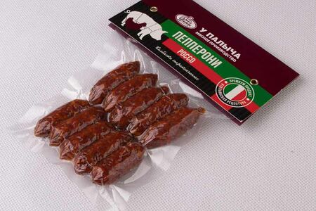 Острые сырокопченые колбаски Пепперони Россо — разновидность итальянской колбасы салями. Традиционно изготавливаются из мяса свинины с добавлением мяса птицы для нежности. У колбасок слегка острый солоноватый вкус с ярковыраженным ароматом пряностей и копчения.