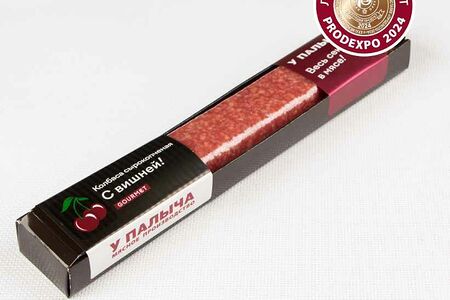 Новинка ресторанной серии — колбаса сырокопченая с вишней ТМ «У Палыча»! Обязательно попробуйте! Удивительное сочетание отборного мяса и вяленой вишни покорит Ваше сердце!
