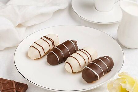 Пирожное Заварное известно всем без исключения любителям сладкого. Это классический десерт советских времен, приготовленный из воздушного, пористого заварного теста из муки высшего сорта, с различного вида начинкой.В упаковке два вида пирожных: с начинкой из сливочного или шоколадного крема на основе натурального масла и сгущенного молока. Сверху пирожные обволакивает шоколадная или белая сахарная глазурь.Пирожное Заварное от Палыча можно отнести к классике, поскольку вкус этого десерта знаком многим с детства, и не перестает радовать любителей сладкого по сей день.