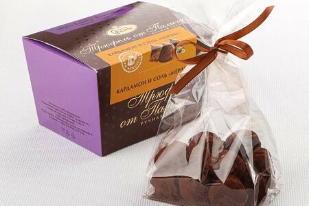 Ганаш из молочного бельгийского шоколада в сочетании с пряным, ароматным кардамоном, морской солью и красным вином из винограда сорта Мерло. Обсыпана конфета какао-порошком мелкого помола.