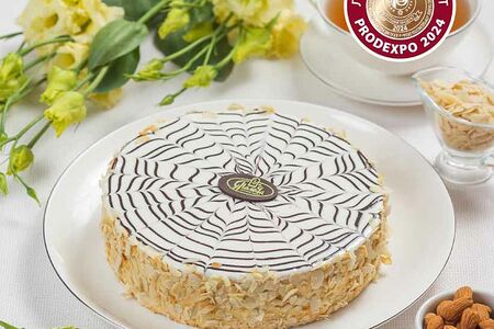 В основе торта нежные миндальные коржи, изготовленные из пшеничной муки с добавлением мелко дробленого ореха миндаля. Коржи прослоены изысканным кремом на основе традиционного крема Шарлотт.