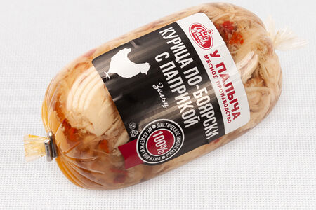 Зельц из нежного диетического белого мяса курицы с сочными кусочками сладкого болгарского перца. Выигрышное сочетание вкуса и качества! Прекрасная холодная закуска к горячим блюдам.