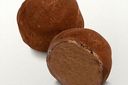Ганаш из молочного 39%-го шоколада с добавлением пюре пасьона, глазированного в молочном шоколаде и какао-порошке тонкого помола.
