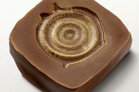 Корпус конфеты — ореховое пралине на основе испанского миндаля и итальянского фундука с добавлением молотых кофейных зерен, глазированный бельгийским молочным шоколадом.