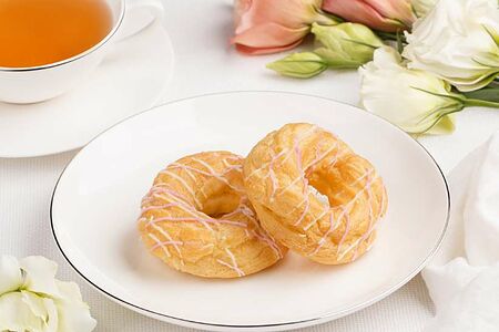 Фирменное заварное тесто. Легкий крем с творожным вкусом.