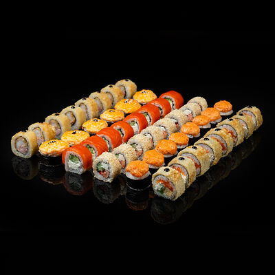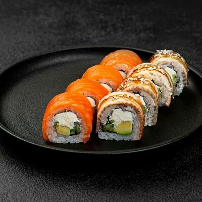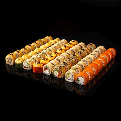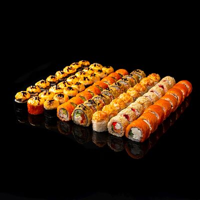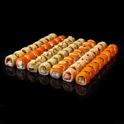 Калифорния, Норвежский ролл, Ролл филадельфия, Ролл Окинава, Ролл запеченный шиитаке, Запеченный ролл с креветкой, Запеченный ролл чикен, Ролл запеченный Хотто маки