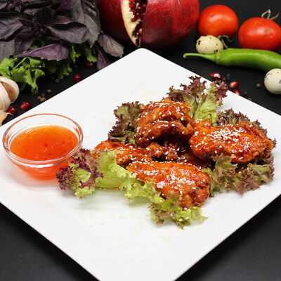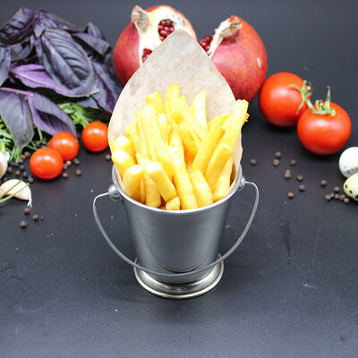 Куриные наггетсы, солёный огурец, помидоры, салат, красный лук, фирменный gg соус, картофель фри, кетчуп барбекю