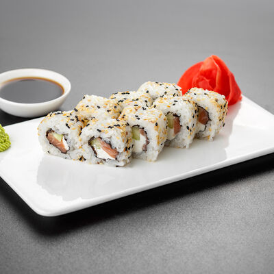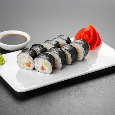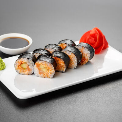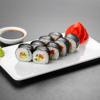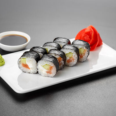 Нори, рис, лосось, огурец, сливочный сыр, яки соус