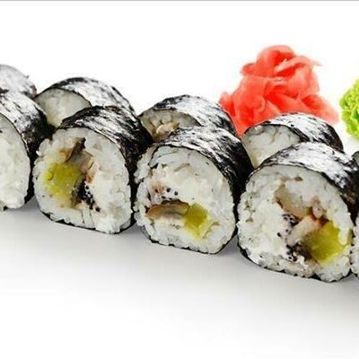 Авокадо. Если нужно сделать острым, укажите это в комментариях к заказу. Соевый соус, васаби, имбирь входят в стоимость