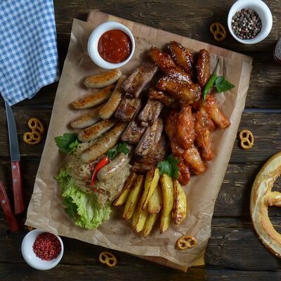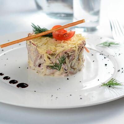 Салат с нюрнбергскими колбасками под пикантным соусом доставка