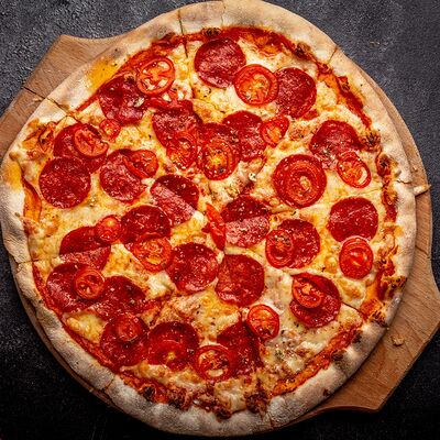 Красный соус, моцарелла, пепперони, томаты черри, орегано (30 см)