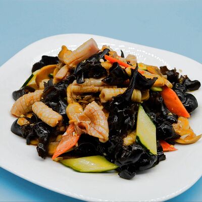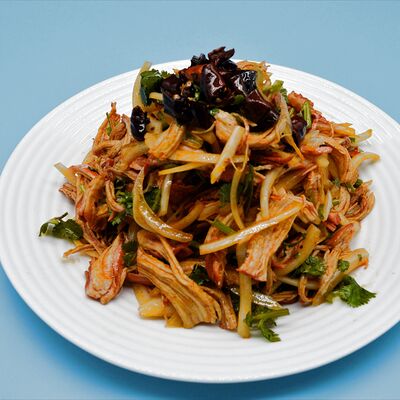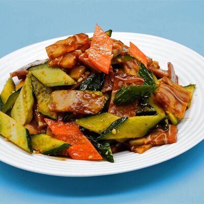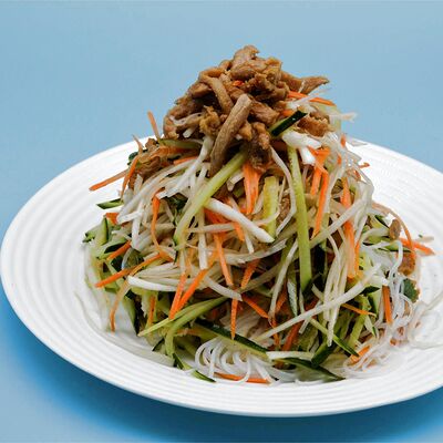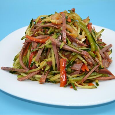 Капуста, огурец, морковь, тофу, фунчоза, соевый соус, свинина