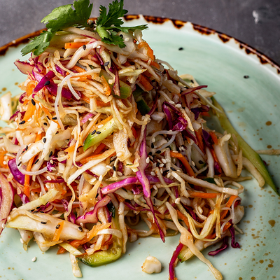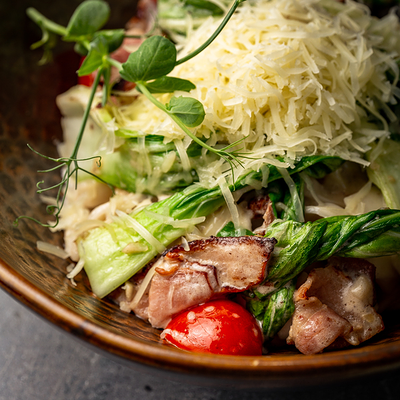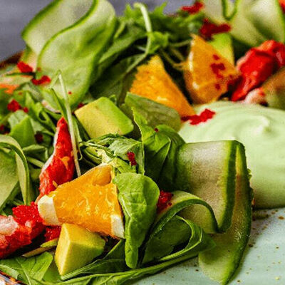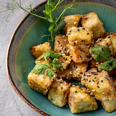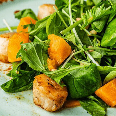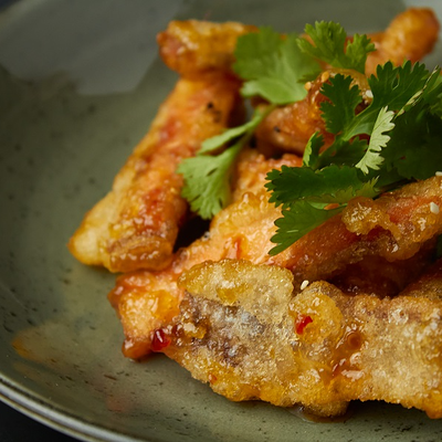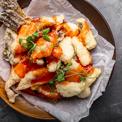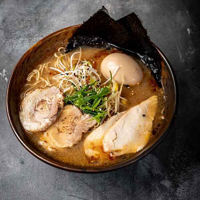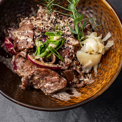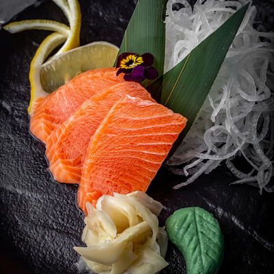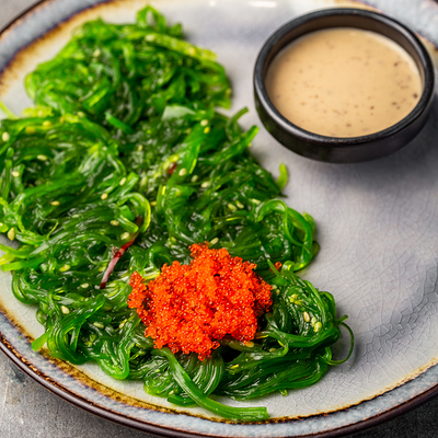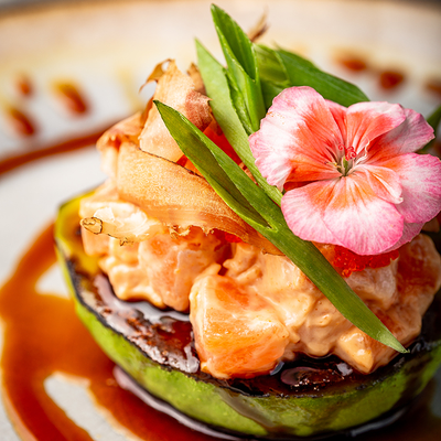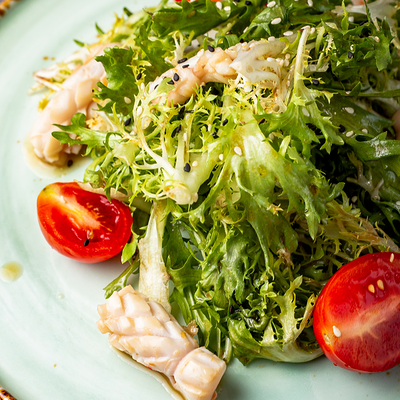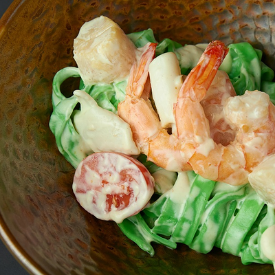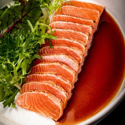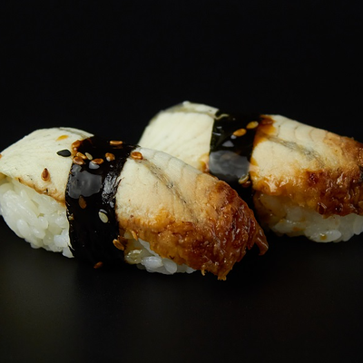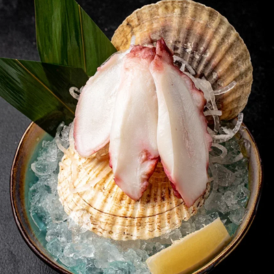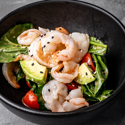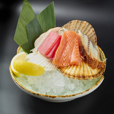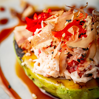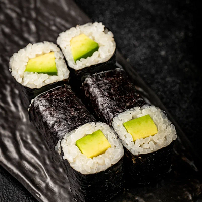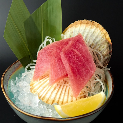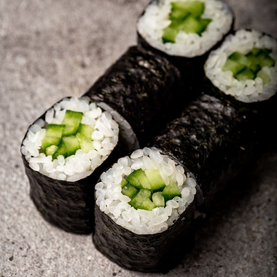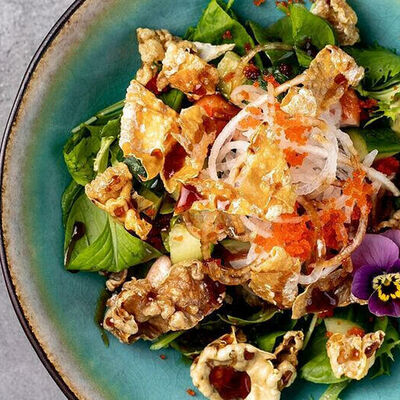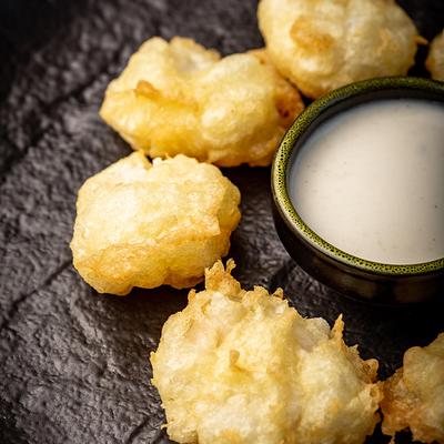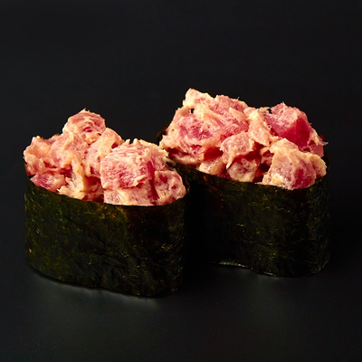 Креветка тигровая, гребешок, икра масаго, сыр творожный сыр, огурец, соус понзу, соус поке, хрустящая темпура, рис японский (8 шт.)