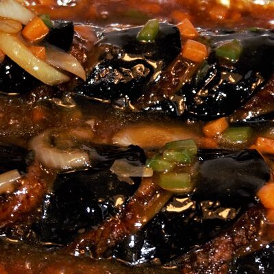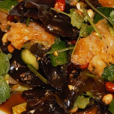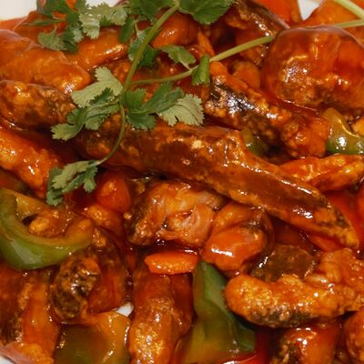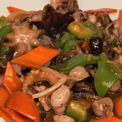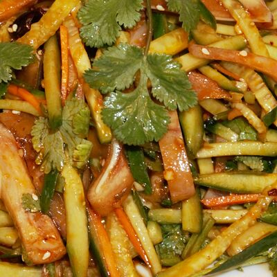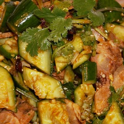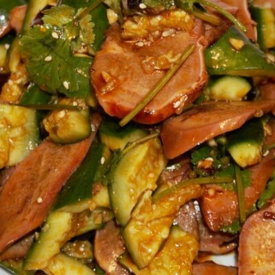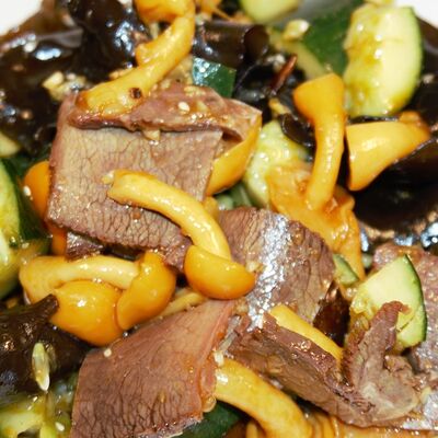 Огурцы, грибы, чеснок, соус кисло-сладкий