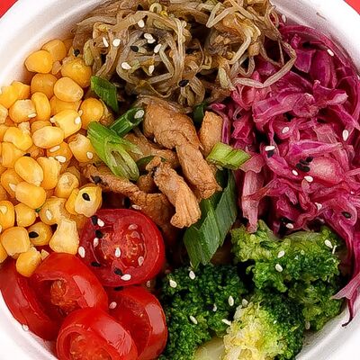 Пшеничная лапша, овощи, курица, соус терияки