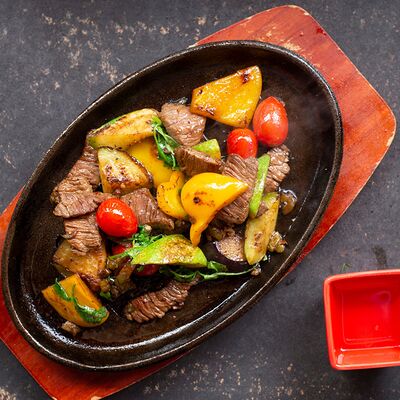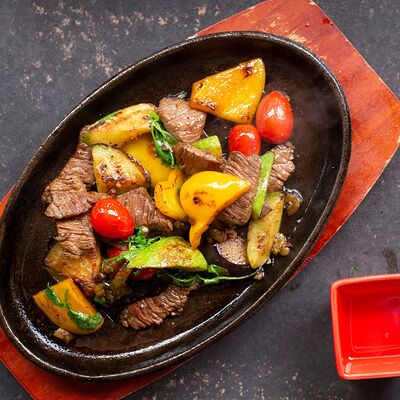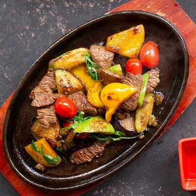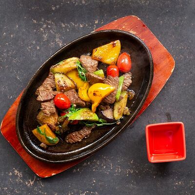 Классическое блюдо мексиканской кухни. Говядина, болгарский перец, баклажан, цукини, лук, чеснок, чили, кинза