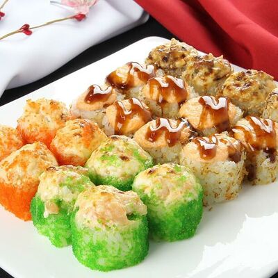 Сет любителям неяпонской классики - идеально для двоих! Три самых популярных ролла от Куши-Суши Состав: Филадельфия ролл (8 шт.), Калифорния ролл (8 шт.), Канада ролл (8 шт.). Гарнируется соевым соусом, васаби, имбирем